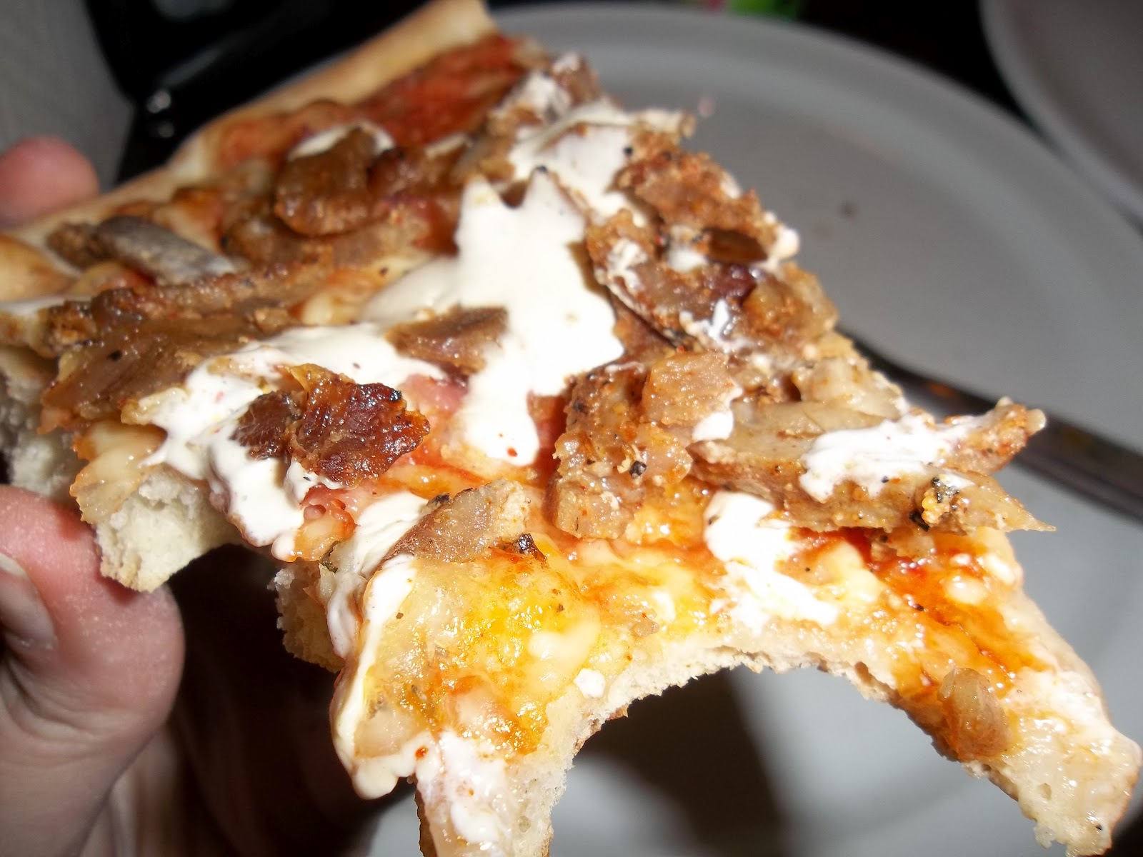 I dream of this pizza. Mamma Mia - tomato sauce, kebab meat (shaved mutton), kebab sauce... I have been tasting this in my dreams for years. I need to figure out how to make it at home.